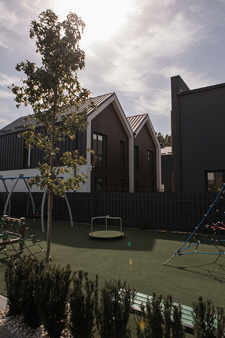 GARDEN VILLAGE OZERNE у Крюківщині має неймовірну локацію поблизу великої зеленої зони та озера. На загальній площі 1 га розміщено 58 будинків різного типу: 24 таунхауси та 34 дуплекси. Архітектори розробили два варіанти таунхаусів та пʼять варіантів дуплексів, що дозволить обрати дім, який відповідає вашим потребам. Всі варіанти мають комфортне й функціональне планування, земельну ділянку близько 2 соток, окремий вхід, два паркомісця та зелену зону з подвірʼям.